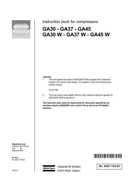 Download ATLAS COPCO GA 37 SERVICE MANUAL Library Binding ManyBooks